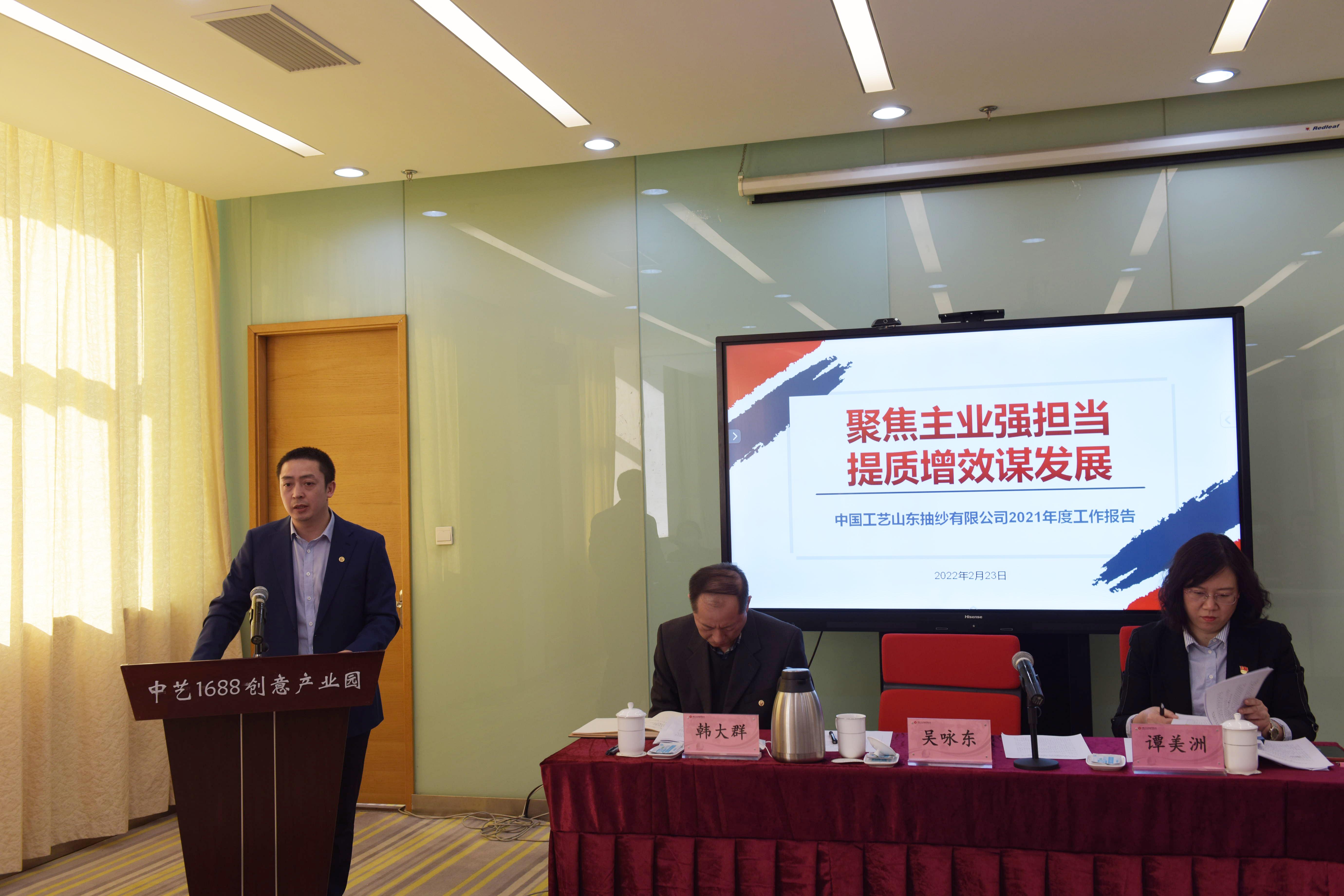 山东公司党支部书记、总经理吴咏东作年度工作报告。报告指出,2021年在保利工艺、中艺总公司带领和大力支持下,山东公司聚焦主业主责,强化责任担当,围绕经营目标和重点工作任务,扎实推进,以党建促经营,超额完成主要财务经营考核目标。报告分析了现阶段公司在资产运营效益提升、存量资产价值释放、“人事劳动分配”三项制度改革和历史遗留问题清理等方面存在的不足,强调了山东公司2022年要以党建提升三年工程为主线,发挥党建引领作用,强化安全生产和疫情防控,牢固树立精益管理理念,以提升资产运营效率与效益、加快存量资产盘活和实现资金脱困为主要任务,加快推进三项制度改革,推动企业持续健康发展。